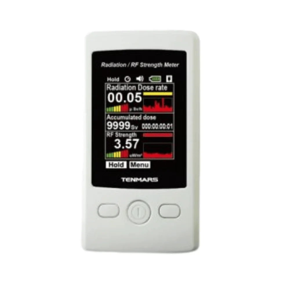 Tenmars TM-93 là loại máy đo bức xạ đa năng của Tenmars. TM-93 có thể đo được bức xạ và cường độ sóng vô tuyến RF. Máy được thiết kế nhỏ gọn với màn hình 2.4 inch color TFT LCD hiển thị rỏ nét dễ xem. Đo và hiển thị song song phía trên đo bức xạ, phía dưới hiển thị kết quả đo cường độ sóng vô tuyến RF.