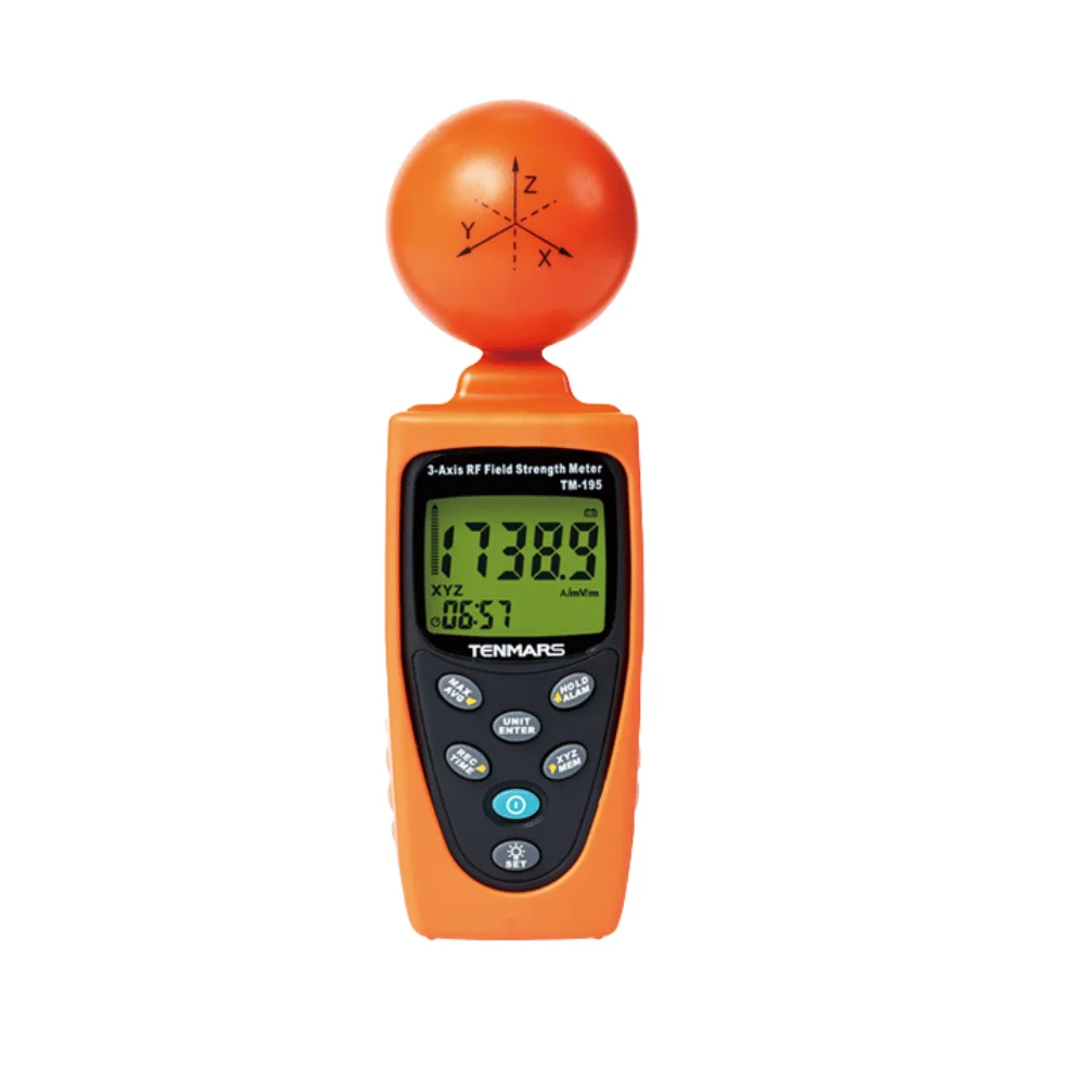 Tenmars TM-195 là máy đo cường độ sóng điện trường đa năng của hãng Tenmars Đài Loan. Đây là thiết bị đo sóng điện trường với tần số cao với thang đo rộng. Thiết bị được ứng dụng để đo mật độ từ trường tại các trạm sóng điện thoại, các ứng dụng không dây. Đồng hồ đo TM-195 được thiết kế nhỏ gọn, dễ dàng sử dụng.