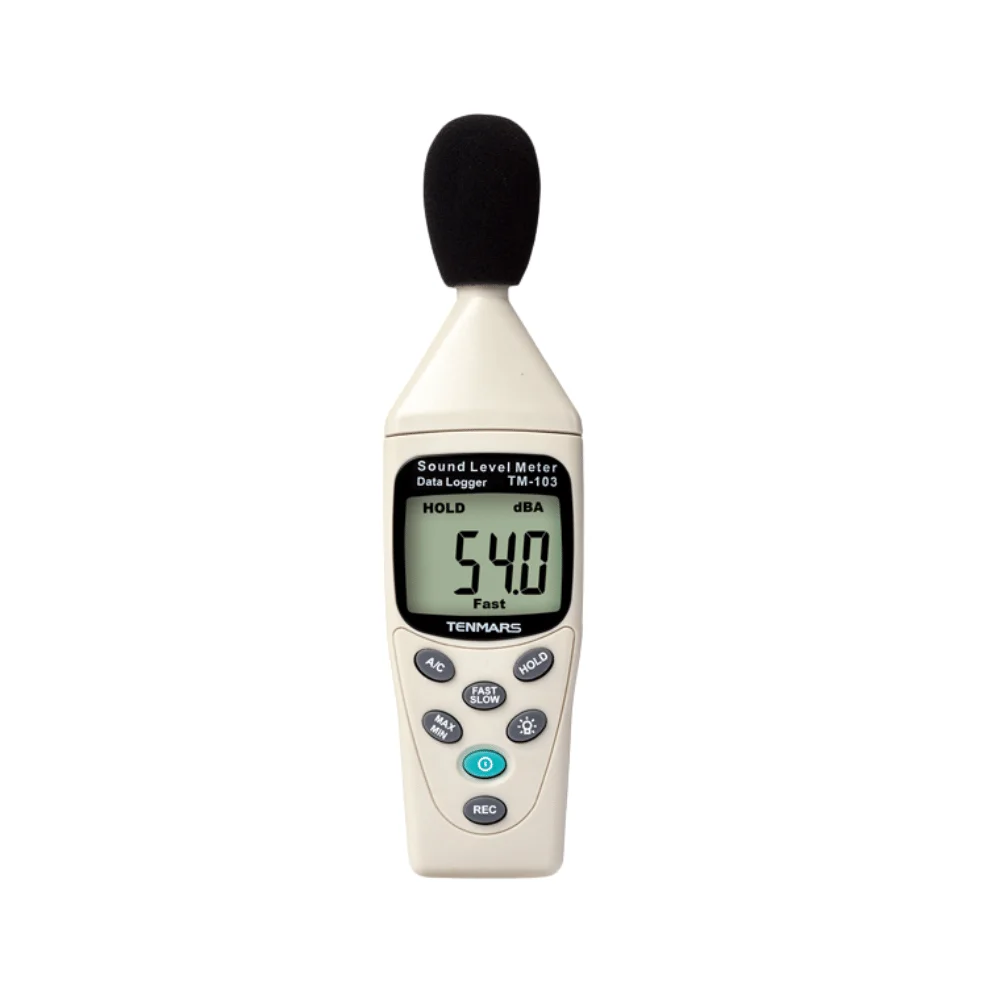 Tenmars TM-103 là thiết bị đo âm thanh độ ồn cao cấp của Tenmars. Hãng sản xuất các thiết bị đo, đồng hồ đo giá rẻ. Tenmars TM-103 được thiết kế nhỏ gọn, vừa tay. Máy đo độ ồn hay tiếng ồn trong nhiều môi trường như: bệnh viện, trường học, văn phòng làm việc, công trường, khảo sát tiếng ồn trong nhà máy sản xuất, kho xưởng,…Máy đo âm thanh TM-103 được Tenmars trang bị màn hình LCD lớn. Thang đo lớn từ 30 – 130 dB. Cho phép kết nối với máy tính lưu dữ liệu lên đến 14.000 records.