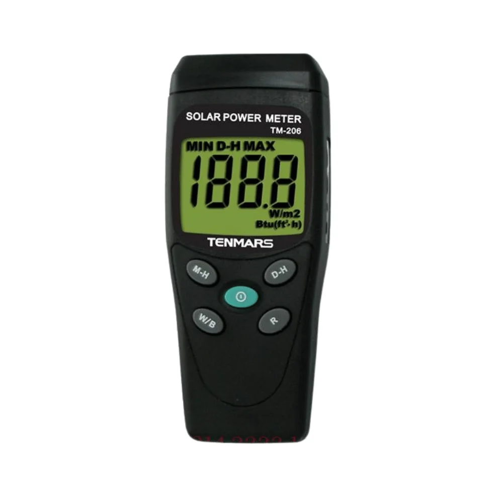 Tenmars TM-206 là loại máy đo năng lượng mặt trời dùng trong ngành công nghiệp năng lượng điện mặt trời. Thiết bị đo mức năng lượng mặt trời TM-206 rất nhỏ gọn, bền bỉ. Máy được ứng dụng trong nông nghiệp, các phòng thí nghiệm năng lượng mặt trời và quang học. Đây chính xác là loại máy đo năng lượng mặt trời giá rẻ của Tenmars.
