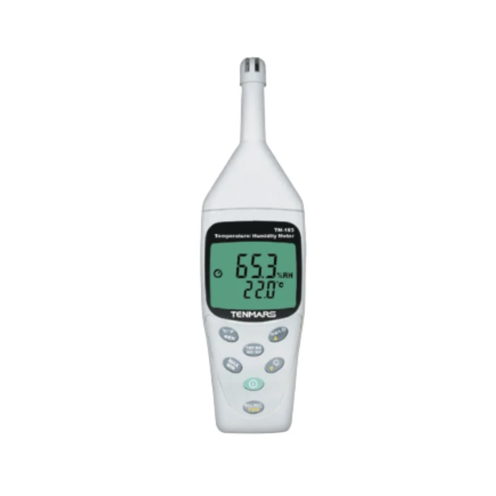 Tenmars TM-183 được thết kế nhỏ gọn cầm chắc tay, cảm biến được tích hợp ngay phía trên của máy liền khối. Ứng dụng đo nhiệt độ và độ ẩm của môi trường, phòng ốc, kho xưởng, đặc biệt là đo nhiệt độ điểm sương và nhiệt độ bầu ướt.