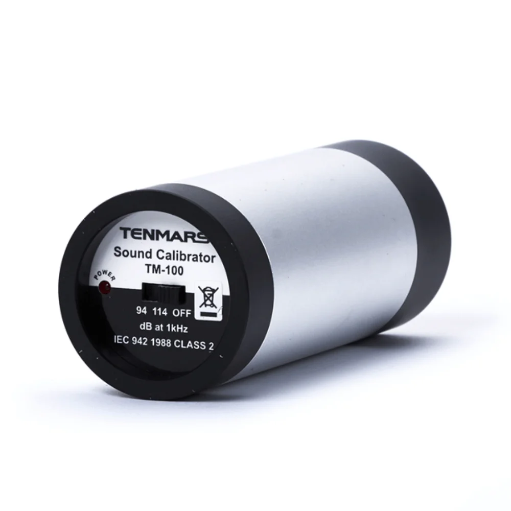 Tenmars TM-100 là máy hiệu chuẩn âm thanh cao cấp của hãng Tenmars. Đây là thiết bị chuyên dùng đo âm thanh trong các nhà máy xí nghiệp, môi trường âm thanh ồn ào. Máy hỗ trợ thiết lập âm thanh chuẩn tại 2 mức: 94dB và 114dB. Máy hiệu chuẩn âm thanh TM-100 đạt tiêu chuẩn quốc tế như. ANSI S1 4-1984 và IEC 942 1988 Class 2. Máy hiệu chuẩn âm thanh Tenmars TM-100 tích hợp micro 1/2 inch.