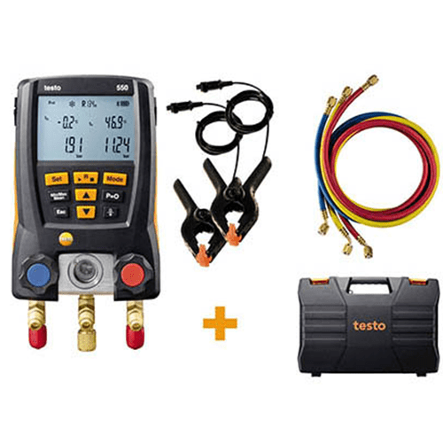 Bộ máy đo đa năng Testo 550 Kit có mọi thứ bạn cần. Nó có thể thay thế đồng hồ đo điện lạnh Analog. 550 là máy đo hệ thống làm lạnh kỹ thuật số hoàn toàn. Nó hiển thị chính xác áp suất cao và thấp ngay lập tức. Màn hình sẽ hiển thị nhiệt độ bão hòa và bay hơi. Giúp bạn có một bức tranh đầy đủ về hiệu suất hệ thống lạnh ngay tức khắc.